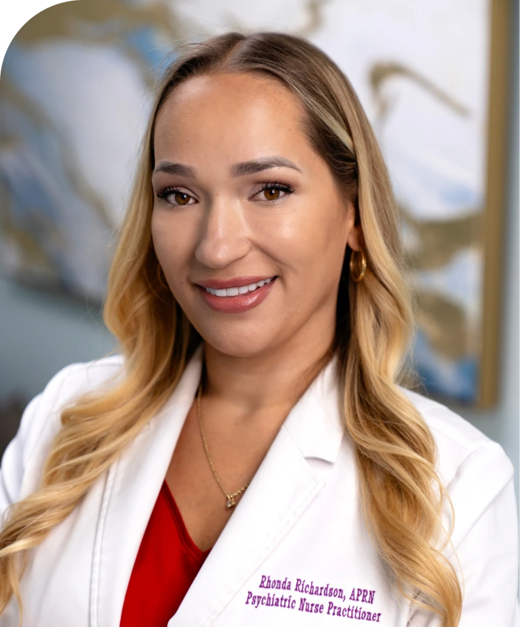 Rhonda Richardson earned her Master of Science in Nursing (MSN) from Nova Southeastern University, graduating in 2021. She is a board-certified Psychiatric Mental Health Nurse Practitioner (PMHNP-BC) through the American Nurses Credentialing Center (ANCC).